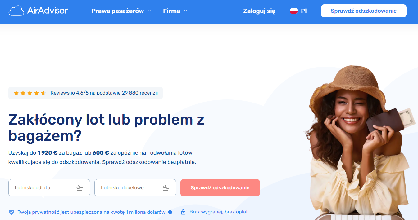AirAdvisor to jedna z czołowych platform typu legal-tech, która specjalizuje się w pomaganiu pasażerom w uzyskiwaniu odszkodowań za problematyczne loty na całym świecie. Firma wyróżnia się modelem biznesowym "No Win, No Fee", co oznacza, że pobiera prowizję wyłącznie w przypadku skutecznego odzyskania pieniędzy.