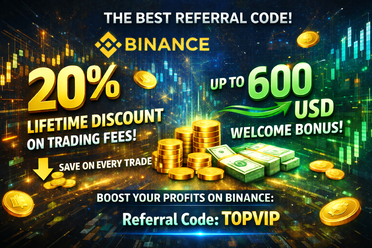The Binance referral code TOPVIP is one of the best options for anyone who wants to start trading with real long-term benefits. By registering with this code, new users receive a 20% lifetime discount on trading fees, which helps reduce costs on every spot and futures trade without any time limits. In addition, Binance offers a welcome bonus of up to 600 USD, available through deposits, trading tasks, and promotional activities. Thanks to permanently lower fees and an attractive start-up bonus, the TOPVIP code makes trading on Binance more profitable and cost-efficient right from the very beginning.