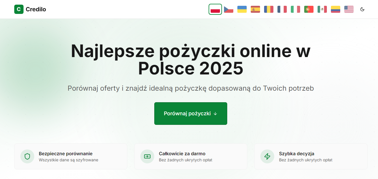 Credilo to jedna z najlepszych porównywarek i rankingów pożyczek online, stworzona z myślą o osobach szukających sprawdzonych i korzystnych ofert finansowych. Serwis w przejrzysty sposób zestawia dostępne pożyczki, ułatwiając porównanie kosztów, warunków oraz czasu spłaty. Dzięki temu Credilo pomaga szybko znaleźć najlepszą pożyczkę online, dopasowaną do indywidualnych możliwości i oczekiwań użytkownika.