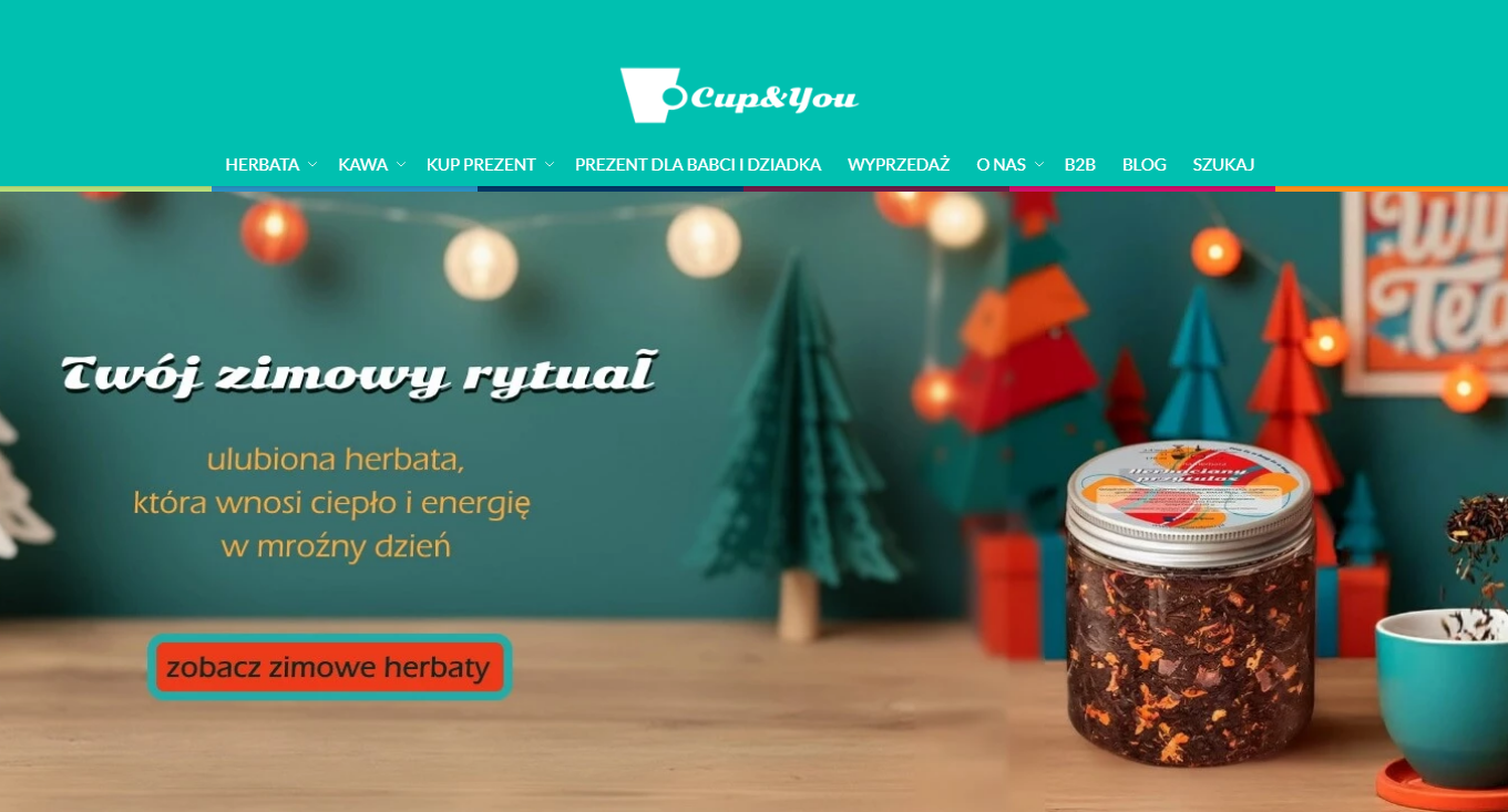 Cup&You to nowoczesny sklep internetowy z herbatą i kawą, który oferuje szeroki wybór aromatycznych herbat i kaw najwyższej jakości. Asortyment obejmuje zarówno klasyczne gatunki, jak i bardziej oryginalne kompozycje smakowe, dostępne w saszetkach degustacyjnych oraz w większych opakowaniach. Ważnym elementem oferty są również zestawy prezentowe, idealne na różne okazje i dopasowane do gustów miłośników kawy oraz herbaty. Cup&You to miejsce stworzone z myślą o osobach, które cenią smak, aromat i chwilę relaksu w codziennym rytuale picia ulubionych napojów.