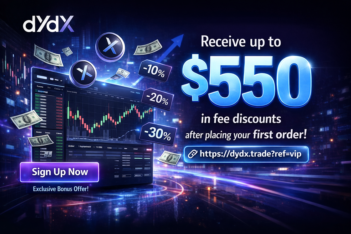 dYdX is the world’s leading decentralized exchange (DEX) for perpetual futures, offering a high-performance, non-custodial trading experience. Built on the custom dYdX Chain, the platform provides professional-grade tools, deep liquidity, and zero gas fees for traders. By signing up via the referral link https://dydx.trade?ref=vip, new users can receive up to $550 in fee discounts after placing their first order. This is a perfect opportunity to trade top cryptocurrencies with up to 20x leverage while significantly reducing your trading costs.