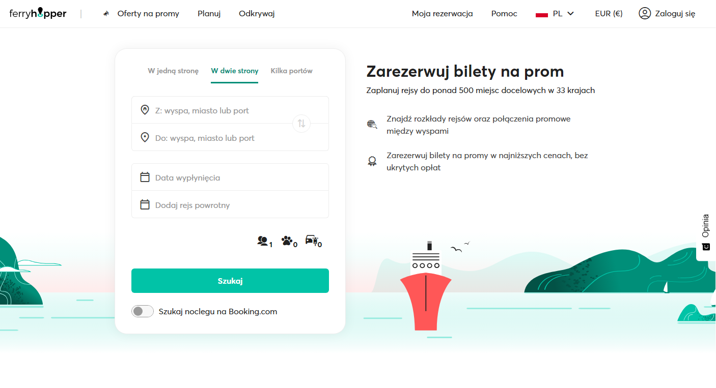 Ferryhopper to popularna platforma internetowa umożliwiająca łatwe wyszukiwanie, porównywanie i rezerwację biletów promowych w całej Europie, zwłaszcza w rejonie Morza Śródziemnego. Serwis działa jako intuicyjny agregator połączeń, łącząc oferty setek przewoźników i pozwalając podróżnym planować trasy między wyspami w takich krajach jak Grecja, Włochy, Hiszpania czy Chorwacja. Dzięki nowoczesnemu interfejsowi i aplikacji mobilnej użytkownicy mogą nie tylko kupić bilety online, ale też zarządzać rezerwacjami, zmieniać daty podróży czy śledzić status promu w czasie rzeczywistym. Ferryhopper wyróżnia się prostotą obsługi, przejrzystym systemem cen oraz brakiem ukrytych opłat, co czyni go jednym z najczęściej wybieranych serwisów do planowania podróży promowych po Europie.