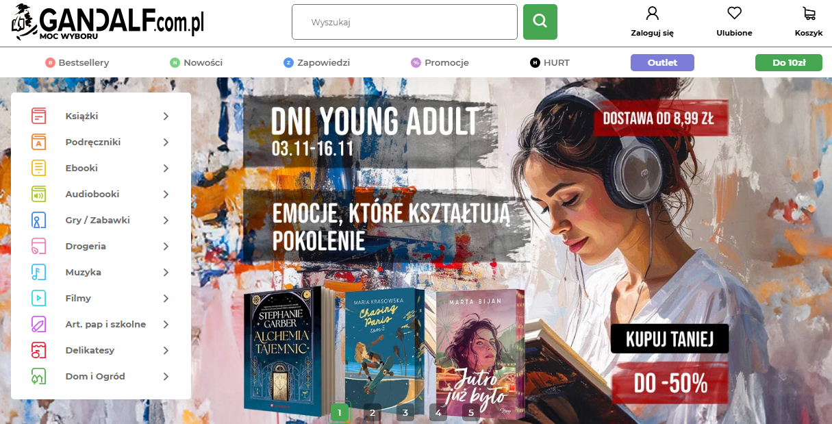 Gandalf to jedno z najbardziej lubianych miejsc w sieci dla miłośników książek, muzyki i kultury. Sklep wyróżnia się ogromnym asortymentem — od bestsellerów literackich i nowości wydawniczych po podręczniki, gry planszowe i produkty dla dzieci. Klienci chwalą Gandalf za szybkie dostawy, atrakcyjne ceny i częste promocje, które pozwalają sporo zaoszczędzić. Strona jest intuicyjna i przyjazna w obsłudze, a obsługa klienta reaguje sprawnie i z życzliwością. To miejsce, które naprawdę dba o czytelników i potrafi zarażać pasją do odkrywania nowych historii.