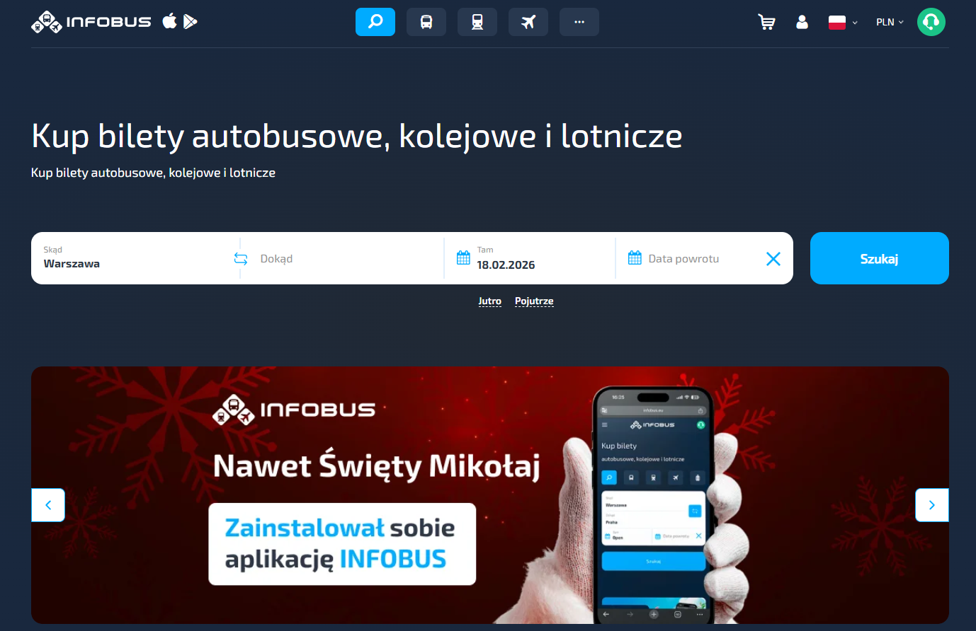Infobus to wszechstronna platforma rezerwacyjna, która dzięki integracji tysięcy połączeń autobusowych i kolejowych pozwala na błyskawiczne zaplanowanie nawet najbardziej złożonej podróży. Aby Twoja kolejna wyprawa była jeszcze tańsza, warto przed zakupem biletu sprawdzić aktualne okazje i kody rabatowe w serwisie Kody.pl