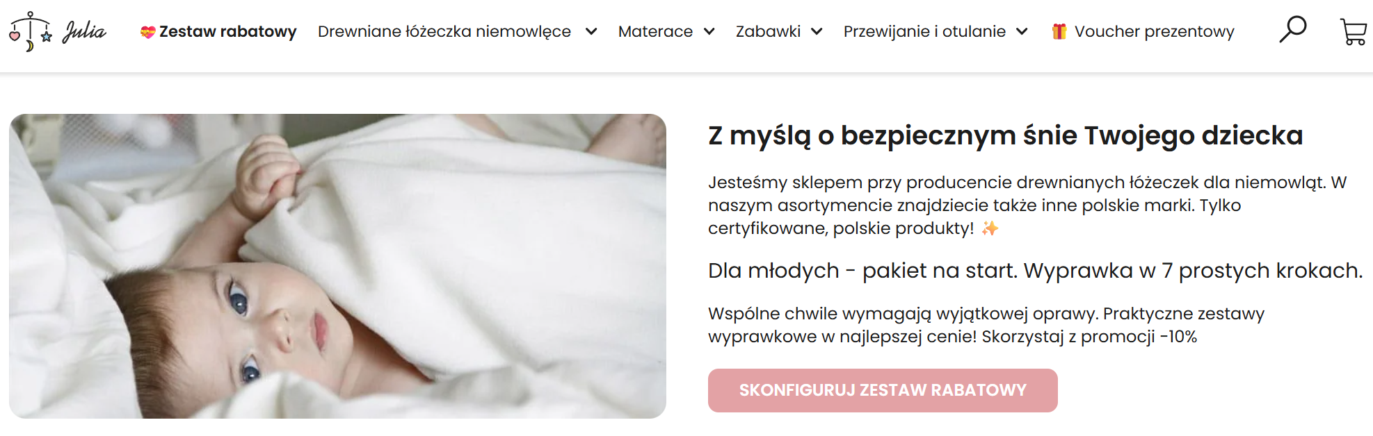 Sklep Julia to ceniony polski producent drewnianych łóżeczek niemowlęcych, który w swojej ofercie posiada również wysokiej jakości materace, pościele, zabawki...