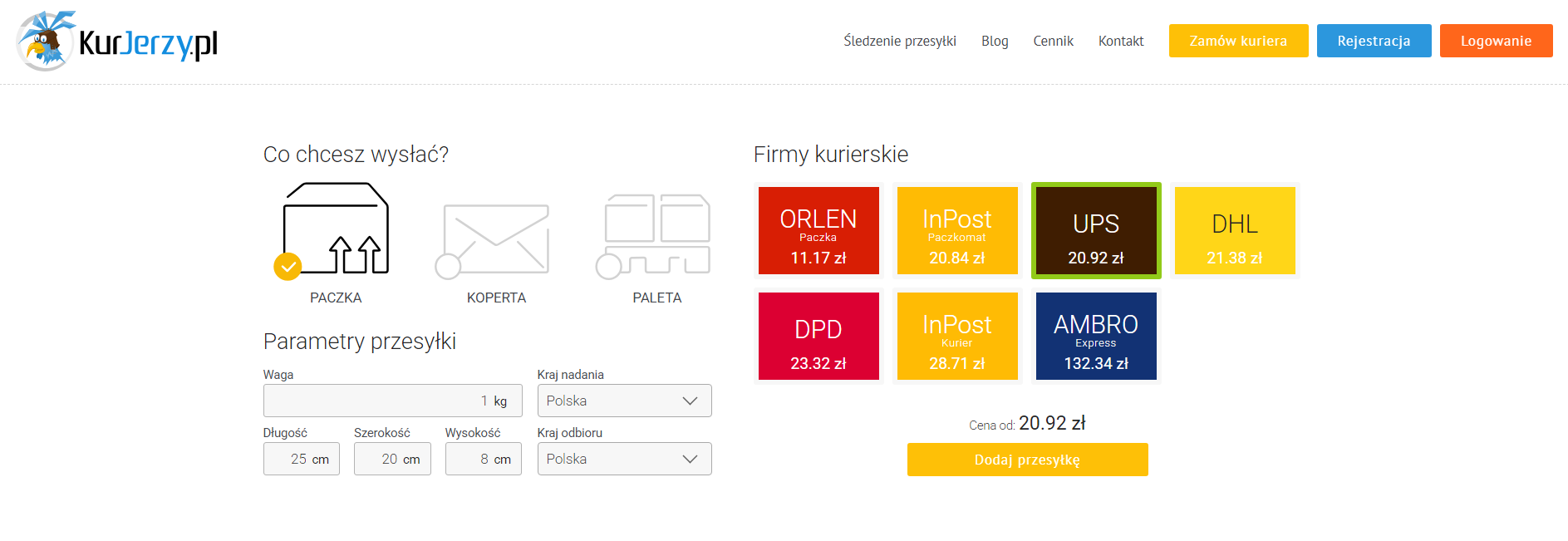 KurJerzy to polski serwis, który umożliwia szybkie i tanie nadawanie paczek, porównując oferty wielu firm kurierskich i wybierając najkorzystniejsze rozwiązania.