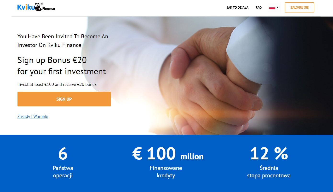 Bonus za rejestrację 20€ za pierwszą inwestycję. Zainwestuj co najmniej 100€ i otrzymaj bonus 20€. Kviku Finance to nowoczesna platforma finansowa, która umożliwia szybkie i wygodne uzyskanie pożyczki całkowicie online. Cały proces – od rejestracji po decyzję – zajmuje tylko kilka minut, bez zbędnych formalności. Nowi użytkownicy mogą liczyć na atrakcyjny bonus powitalny, a wszystkie warunki są jasne i przejrzyste. Kviku Finance łączy nowoczesne technologie z bezpieczeństwem i wygodą, stając się symbolem współczesnych, przyjaznych finansów online.