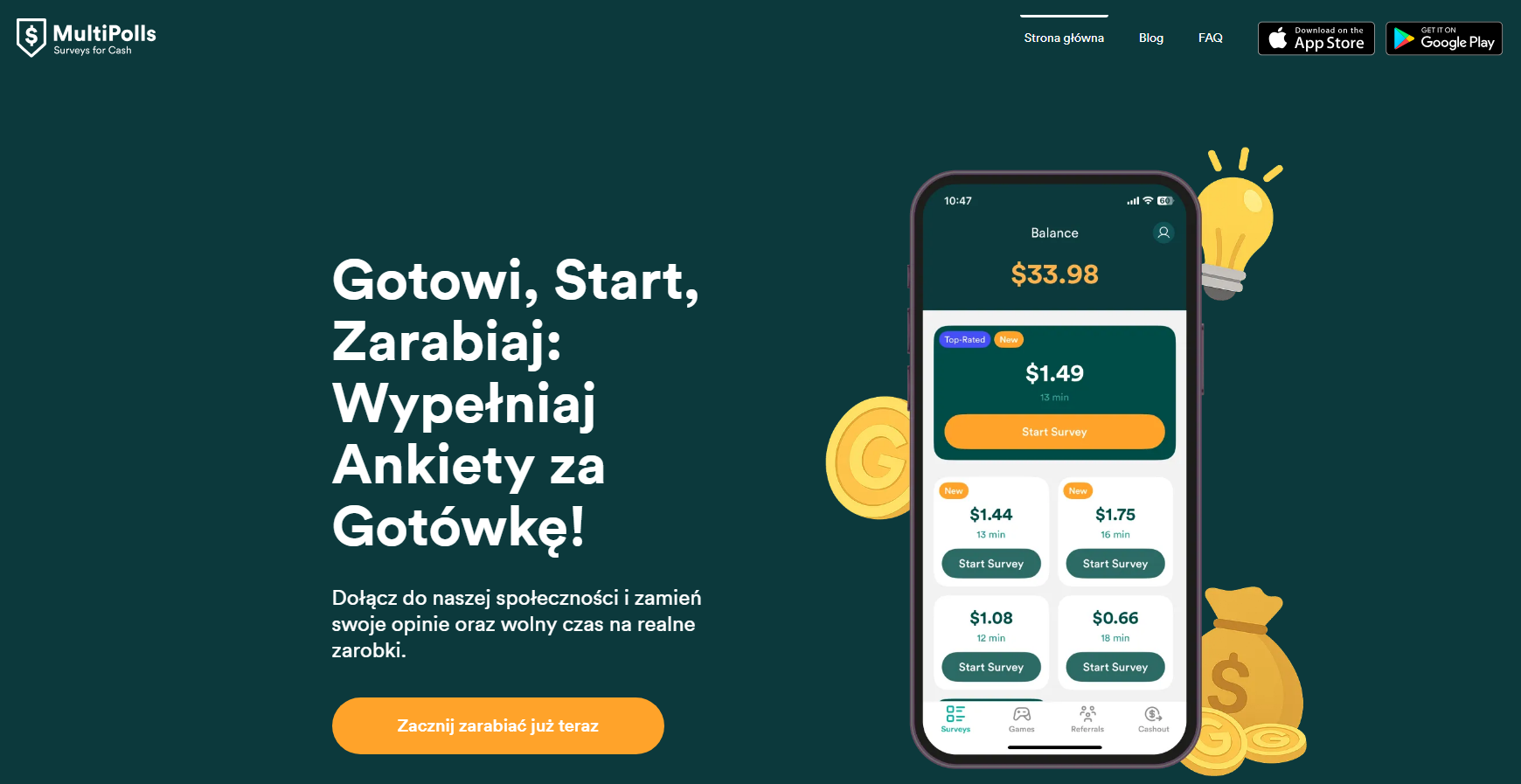 MultiPolls to aplikacja, dzięki której można łatwo zarabiać, wypełniając krótkie ankiety online. Jest darmowa, przejrzysta i umożliwia szybkie wypłaty, dlatego zyskała dużą popularność wśród użytkowników. Wystarczy kilka minut dziennie, by zdobywać punkty i wymieniać je na pieniądze lub nagrody. Co ważne, przy rejestracji warto wpisać kod zaproszenia APH78622, który daje bonus 10% na start.