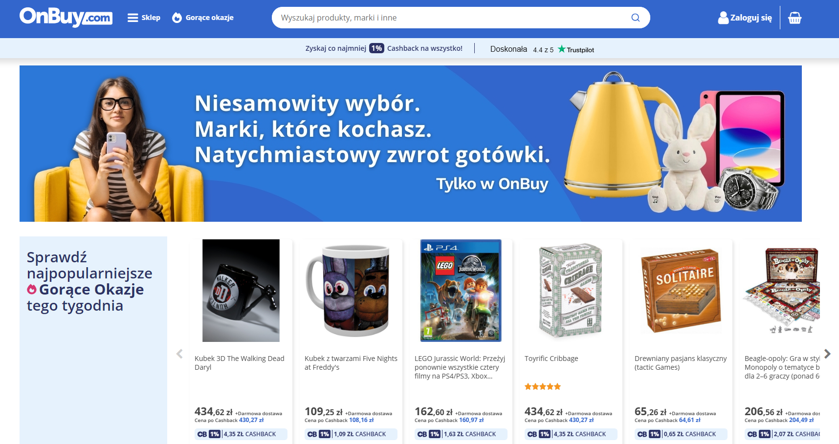 OnBuy to brytyjski marketplace, który łączy sprzedawców z klientami w jednym, przejrzystym ekosystemie zakupowym. Platforma oferuje miliony produktów w różnych kategoriach — od elektroniki i mody po wyposażenie domu i ogrodu. W odróżnieniu od wielu konkurentów, OnBuy nie prowadzi własnej sprzedaży, dzięki czemu nie konkuruje ze sprzedawcami, a skupia się na budowaniu uczciwego rynku. Serwis rozwija się dynamicznie również w Polsce, oferując atrakcyjne ceny, szybkie dostawy i programy cashback, które pozwalają oszczędzać przy każdym zakupie.