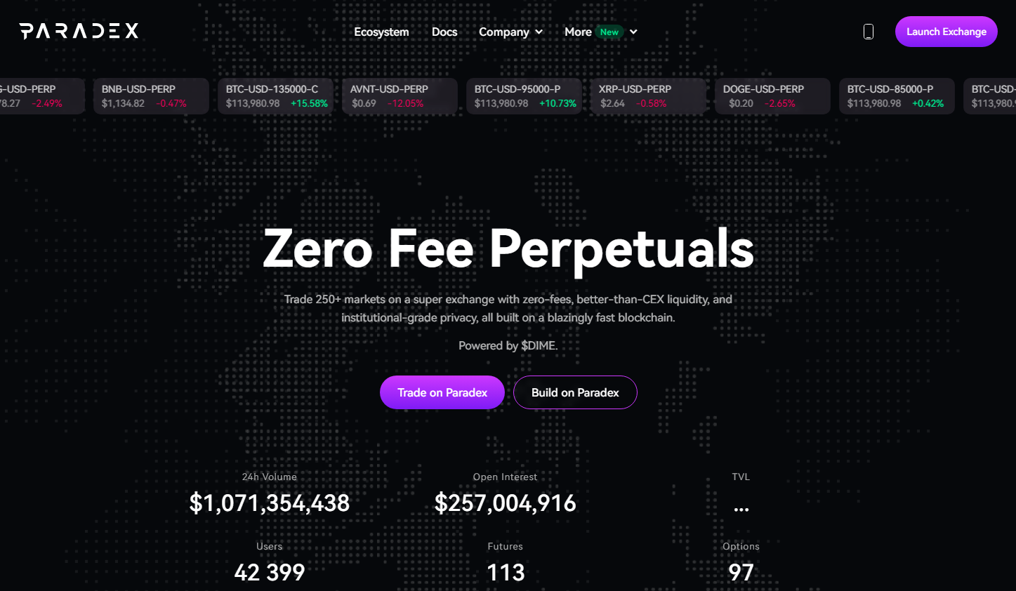 Paradex to innowacyjna giełda kryptowalut, która łączy szybkość, bezpieczeństwo i niskie koszty transakcji dzięki technologii StarkNet, działającej w warstwie drugiej blockchaina. Platforma oferuje wysoką płynność i szeroki wybór par handlowych, co sprawia, że handel jest płynny i komfortowy nawet przy dużych zleceniach. Paradex wyróżnia się również nowoczesnym ekosystemem – oprócz samej giełdy integruje portfele, mosty między łańcuchami i różne rozwiązania DeFi, tworząc spójną przestrzeń dla inwestorów. Intuicyjny interfejs i możliwość testowania funkcji w środowisku testnet czynią ją przyjazną zarówno dla początkujących, jak i doświadczonych użytkowników. To projekt, który stawia na przejrzystość, innowacyjność i realne usprawnienia w handlu cyfrowymi aktywami.