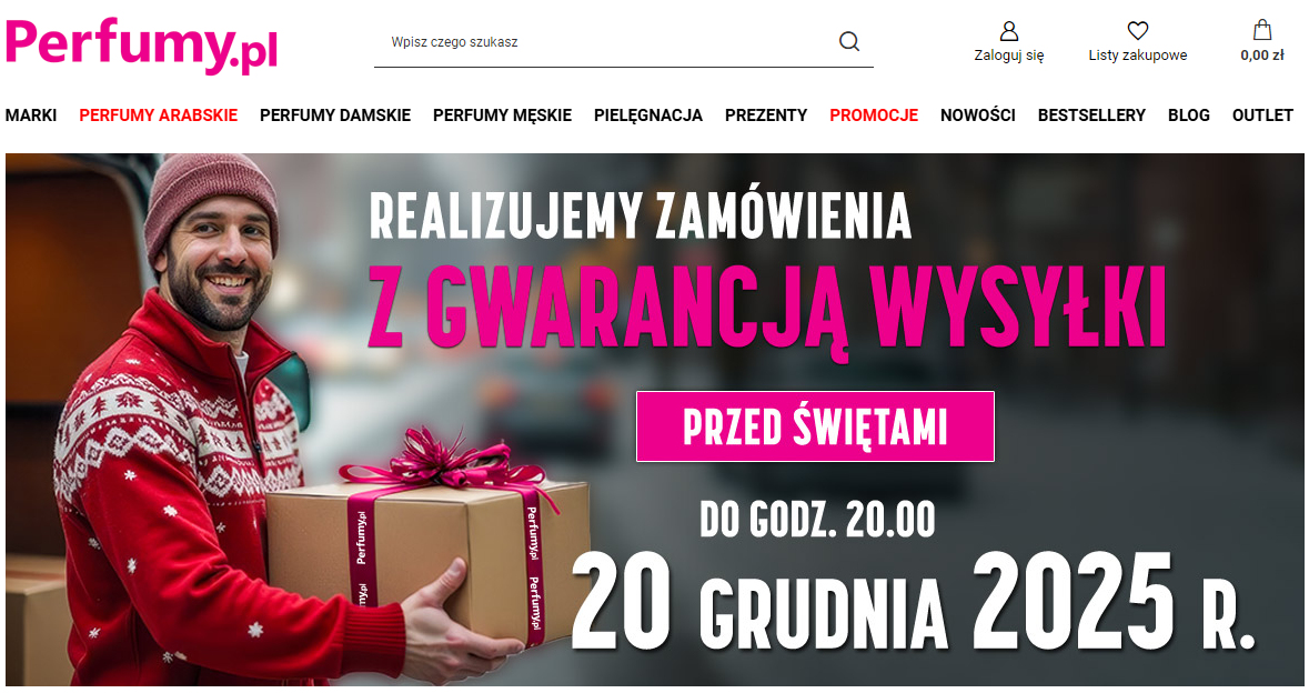 Perfumy.pl to popularny sklep internetowy, który specjalizuje się w sprzedaży oryginalnych perfum i kosmetyków znanych marek. Wyróżnia się bogatą ofertą, atrakcyjnymi cenami oraz częstymi promocjami, dzięki którym zakupy są jeszcze bardziej opłacalne. Klienci chętnie wybierają Perfumy.pl także ze względu na szybką wysyłkę, wygodny proces zamówienia i wysoki poziom obsługi.