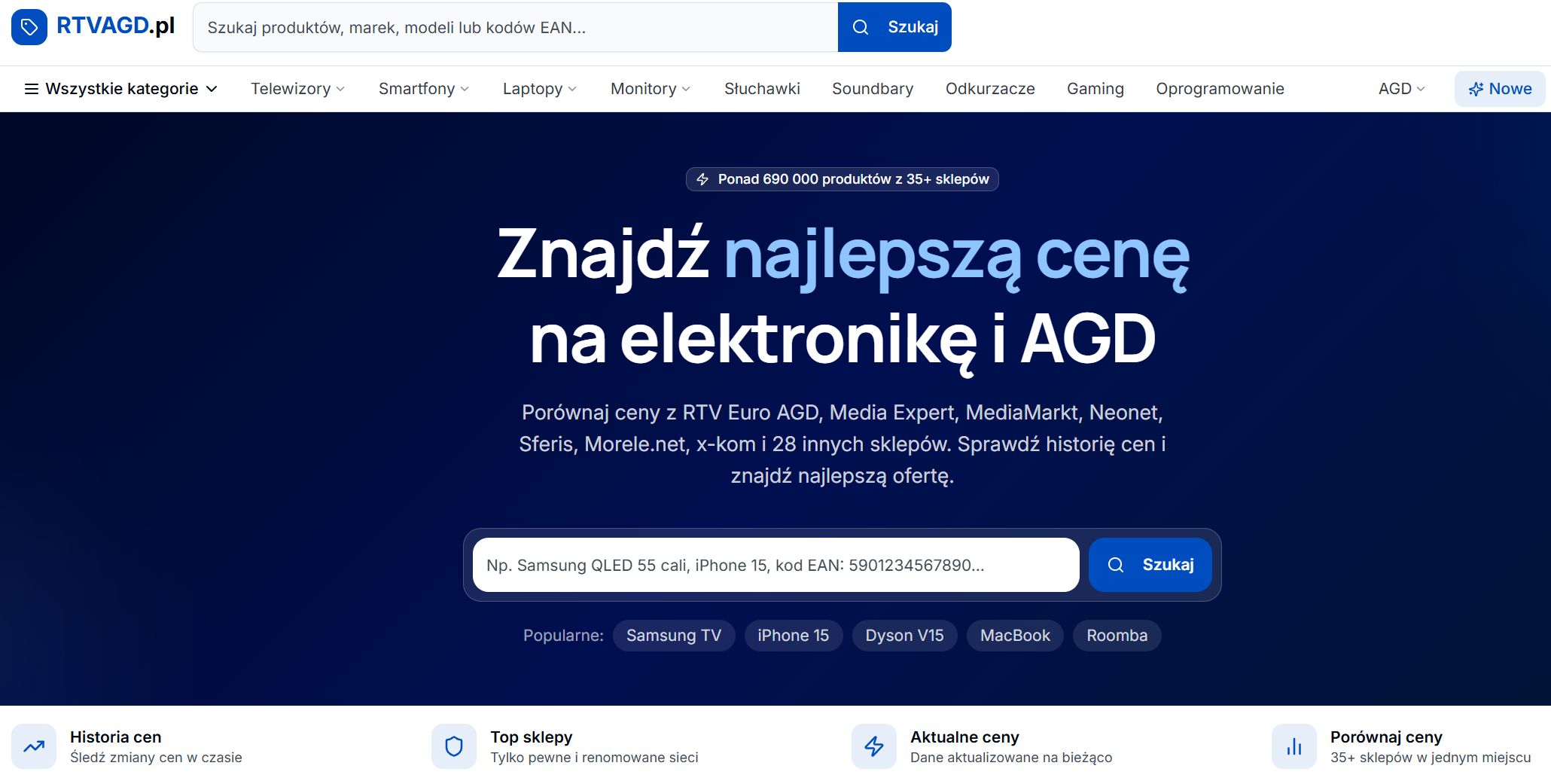 RTVAGD.pl to nowoczesna porównywarka cen elektroniki i sprzętu domowego, która weryfikuje rynek za Ciebie, prezentując oferty wyłącznie z pewnych i sprawdzonych sklepów online oraz udostępniając pełną historię zmian cen dla maksymalnego bezpieczeństwa Twoich zakupów
