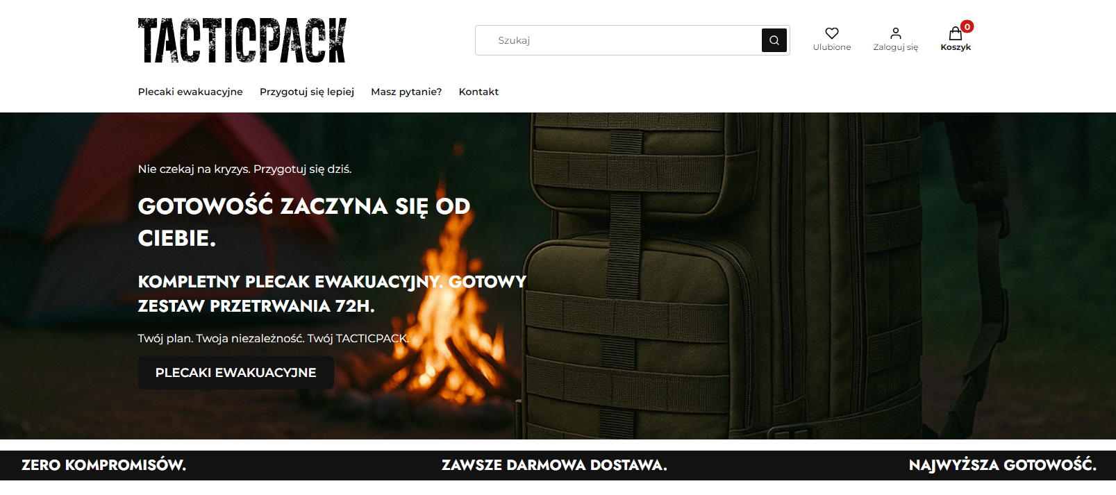 Nie każdy myśli o najgorszym scenariuszu ale ci, którzy to robią, wiedzą, że spokój daje przygotowanie. TACTICPACK powstał z myślą o ludziach, którzy biorą odpowiedzialność za siebie i swoich bliskich. Dla tych, którzy rozumieją, że gotowość to nie strach - to świadomość, że mają kontrolę. Pomagamy budować pewność i niezależność w świecie, który coraz częściej zaskakuje.
