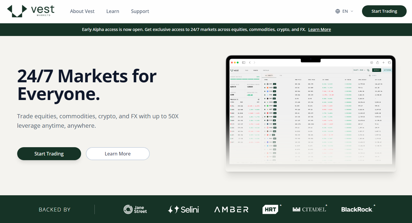 Vest Markets to platforma, która łączy handel kryptowalutami, walutami fiat i tokenizowanymi aktywami takimi jak akcje poprzez mechanizm wieczystych kontraktów...