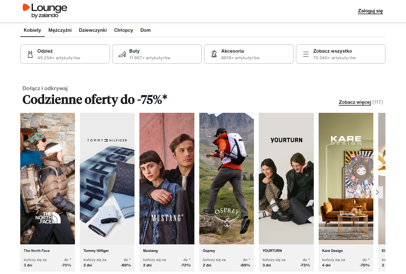 Zalando Lounge to doskonałe miejsce dla wszystkich łowców okazji! Codziennie czekają nowe, ekskluzywne oferty. Odkryj najmodniejsze kolekcje sportowe w kampaniach wyprzedażowych Reebok, znajdź wymarzone jeansy Levis, albo dzianinowe sukienki od Benetton. Sprawdź, jakie marki pojawiły się dziś w Lounge by Zalando. Wejdź i sprawdź wszystkie promocje i okazje jakie ma Zalando Lounge!
